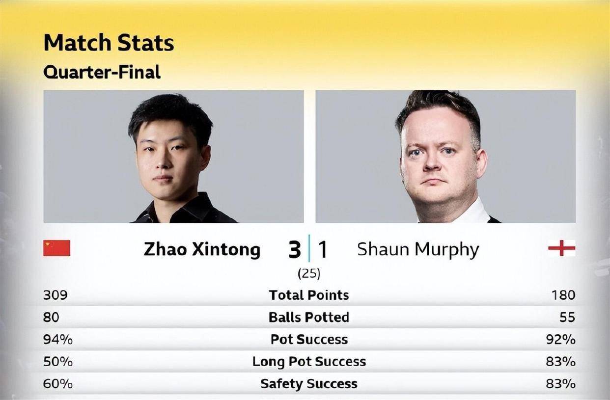 赵心童与墨菲的这场对决,被看作是卫冕冠军与老牌冠军的正面碰撞。 赛前,墨菲曾坦言,与赵心童交手需要警惕自己“被对手的表现迷住”,因为赵心童的球风“实在是太赏心悦目了”。 然而,比赛开始后,墨菲感受到的恐怕不只是赏心悦目,更多的是压迫感。